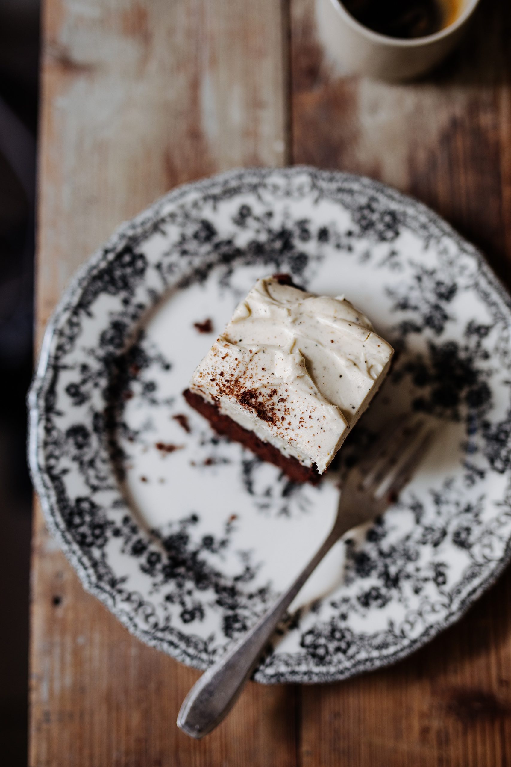 - Kaffee, Vanille und Zimt hinzugeben und verrühren. Den ausgekühlten Kuchen damit bestreichen und bis zum Servieren kalt stellen.