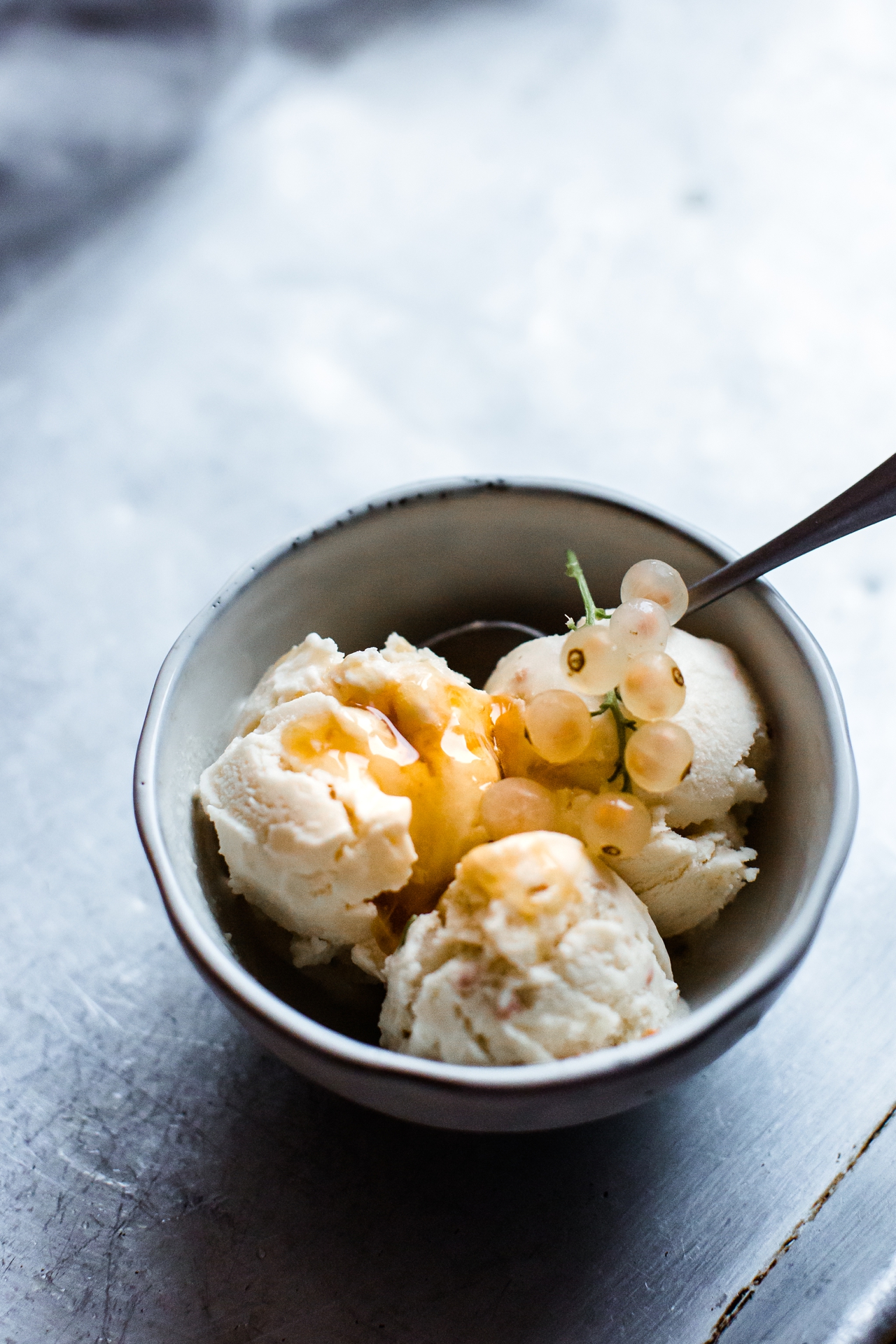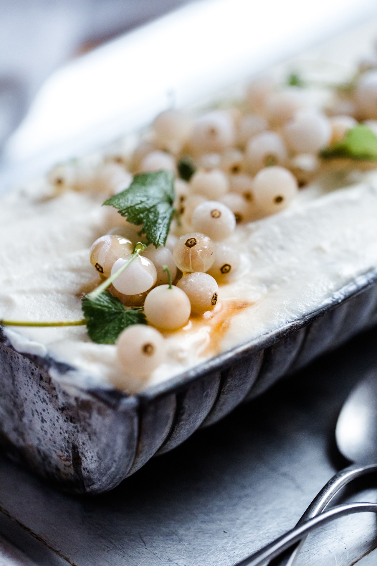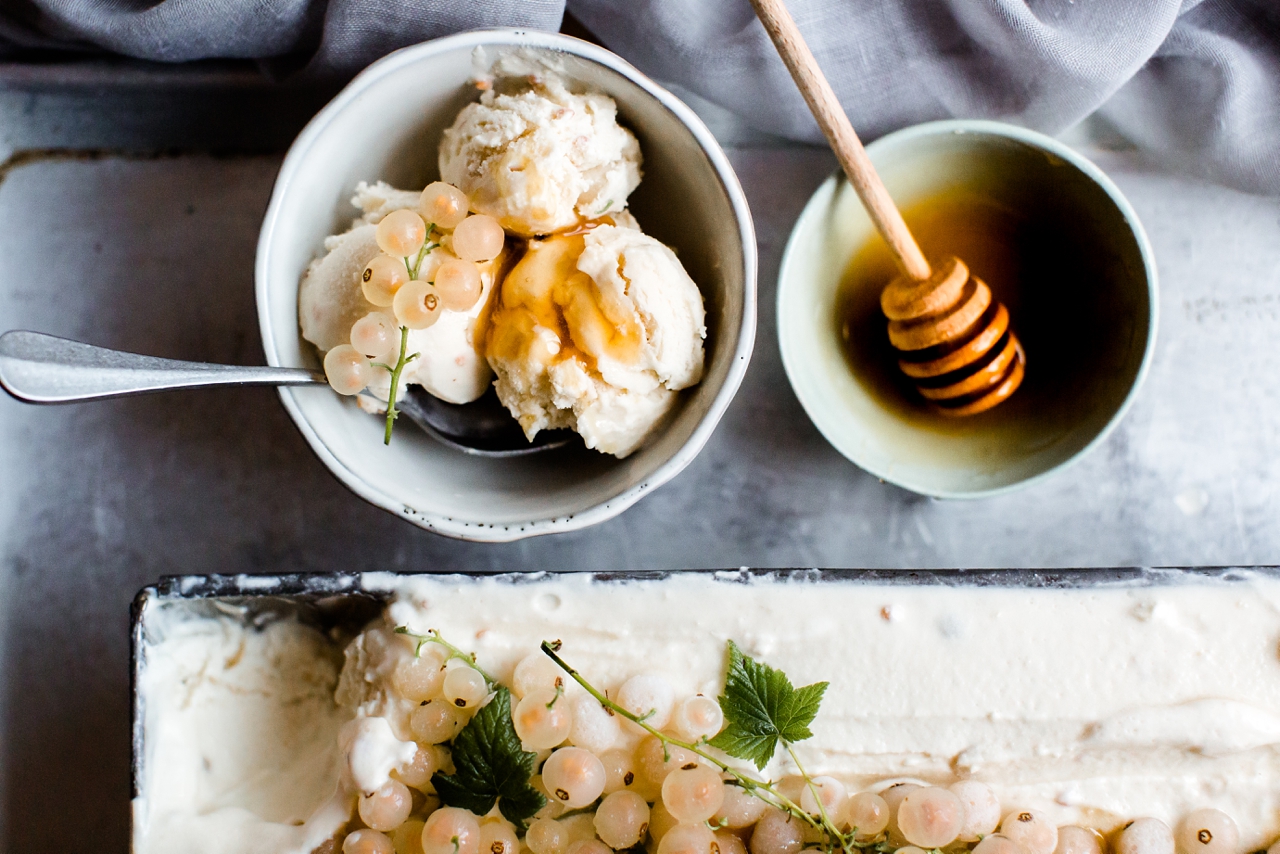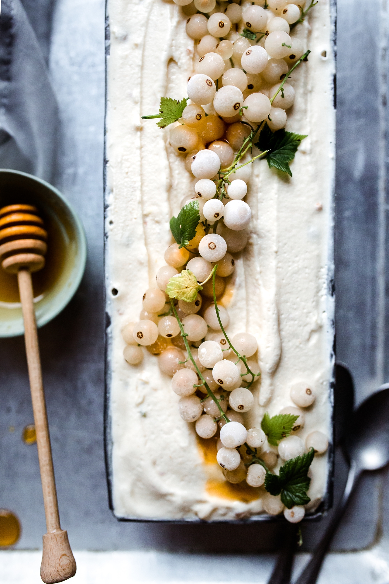 6. Die restlichen Beeren auf der Oberfläche verteilen und ein paar Honigklekse darauf geben. Noch für eine Stunde im Eisfach nachkühlen.