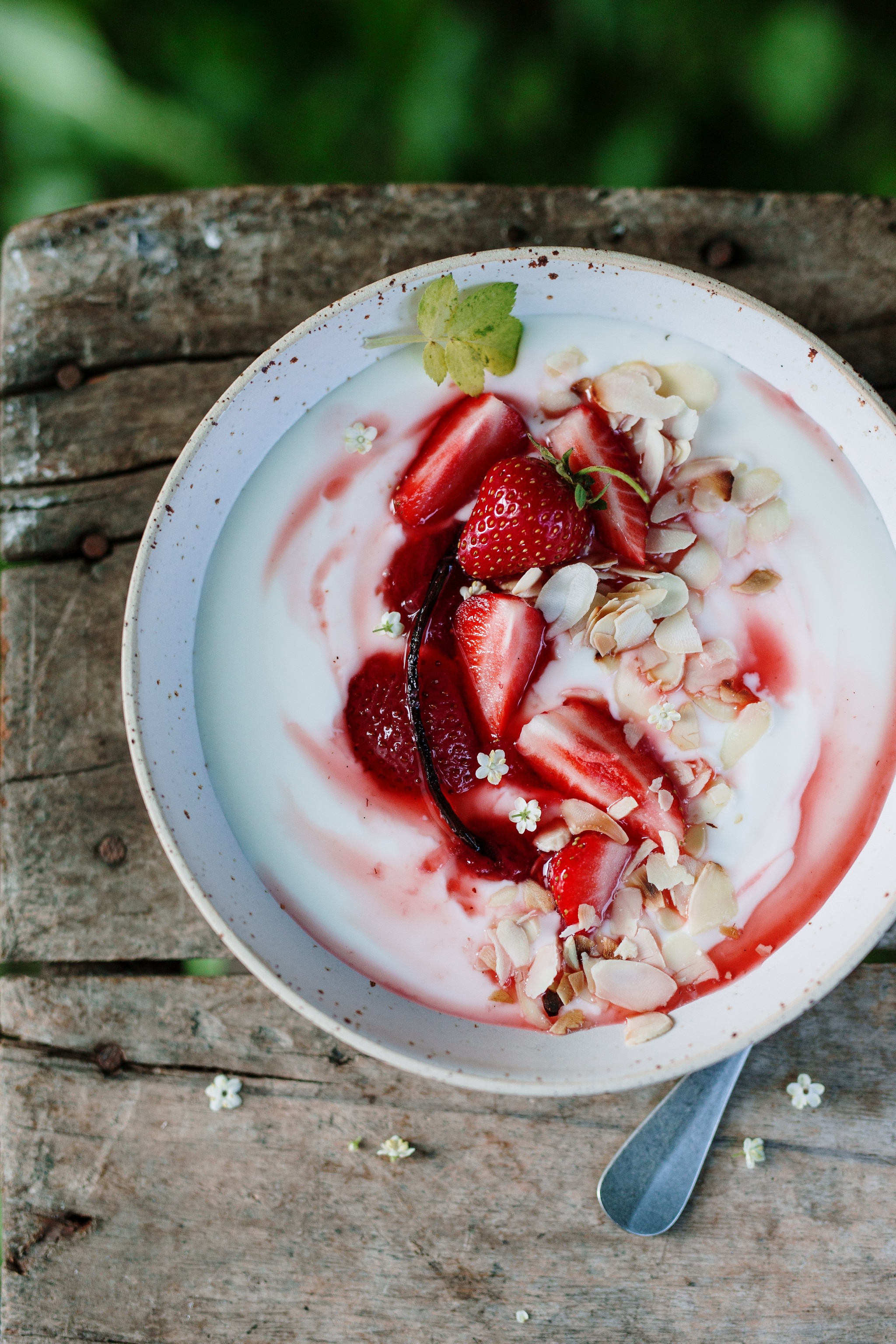 3. Weitere 5 Minuten bei mittlerer Hitze köcheln, zum Schluss die Erdbeeren beigeben und anschließend vollständig auskühlen lassen.
