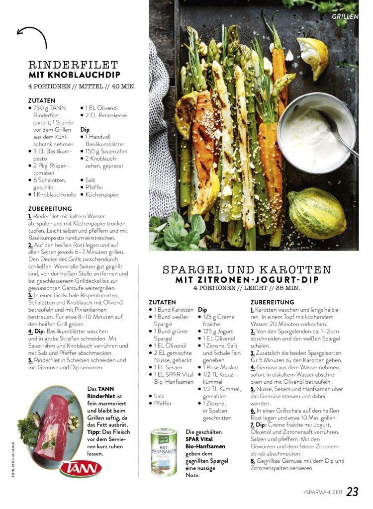 Grill- Strecke für das SPAR Mahlzeit! Magazin                                                 + REZEPTENTWICKLUNG