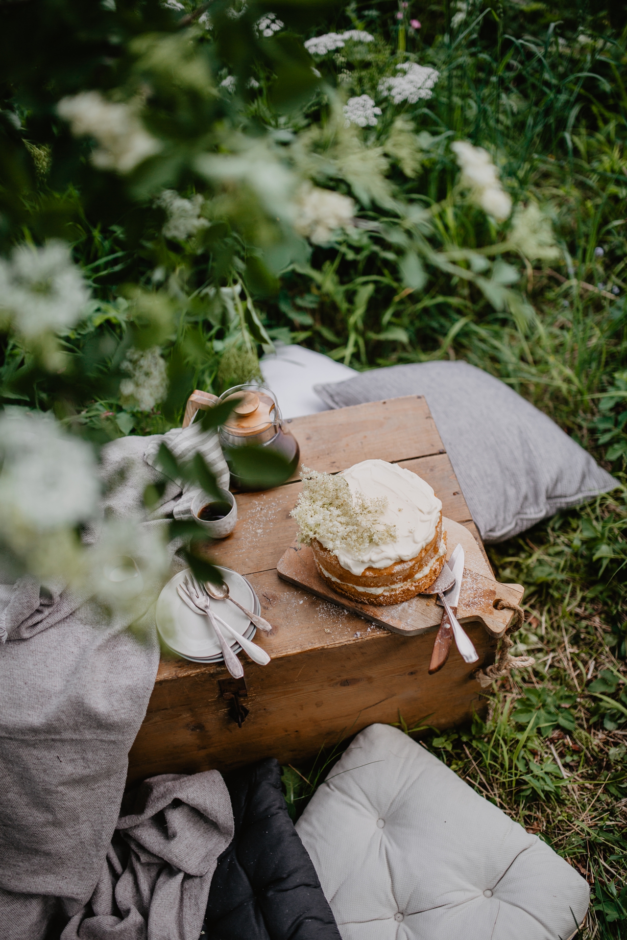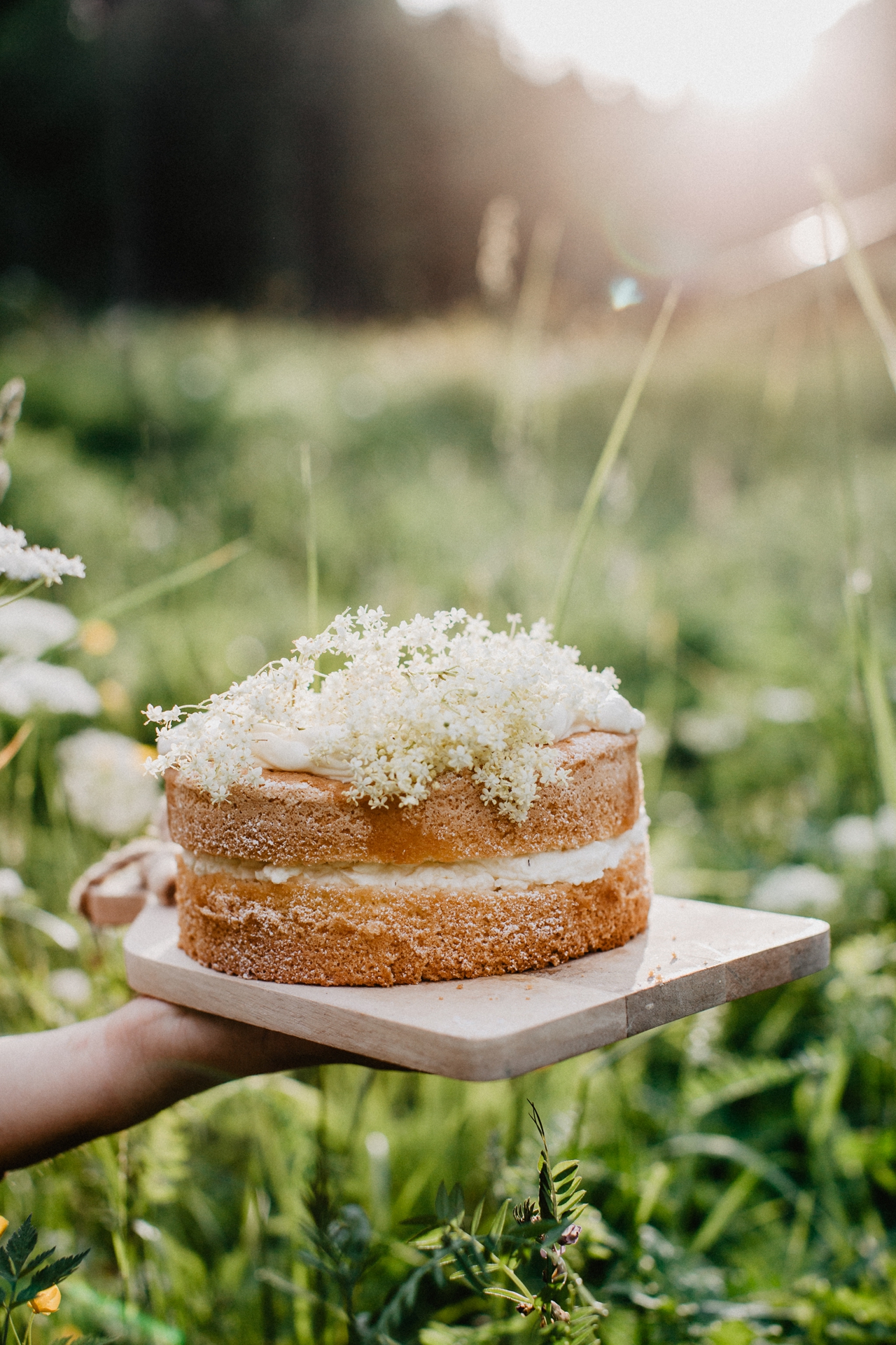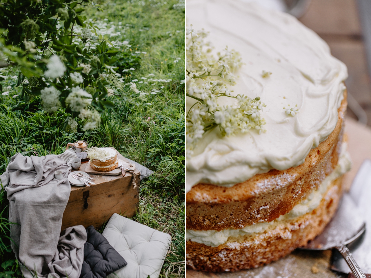 10. Den unteren Boden mit Holunderblüten Sirup beträufeln.