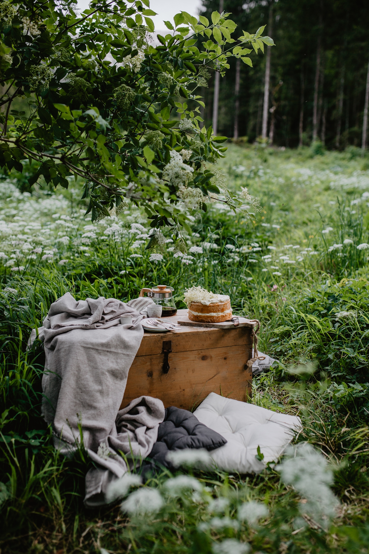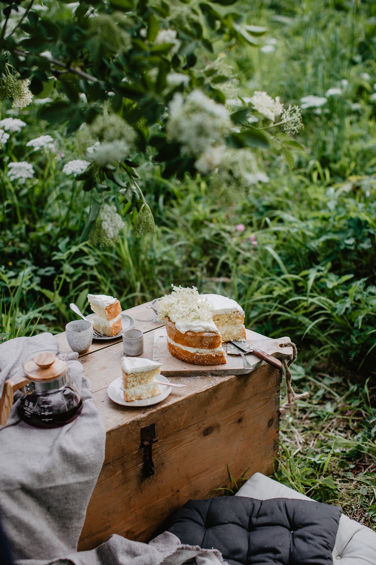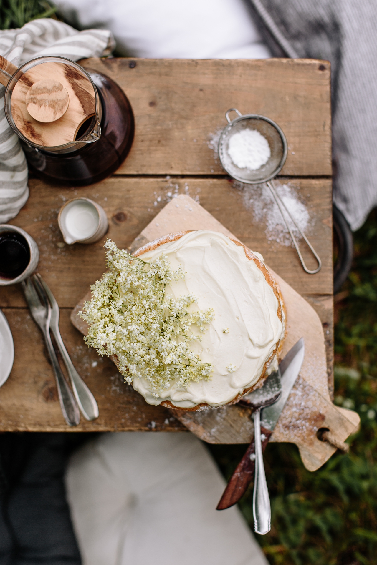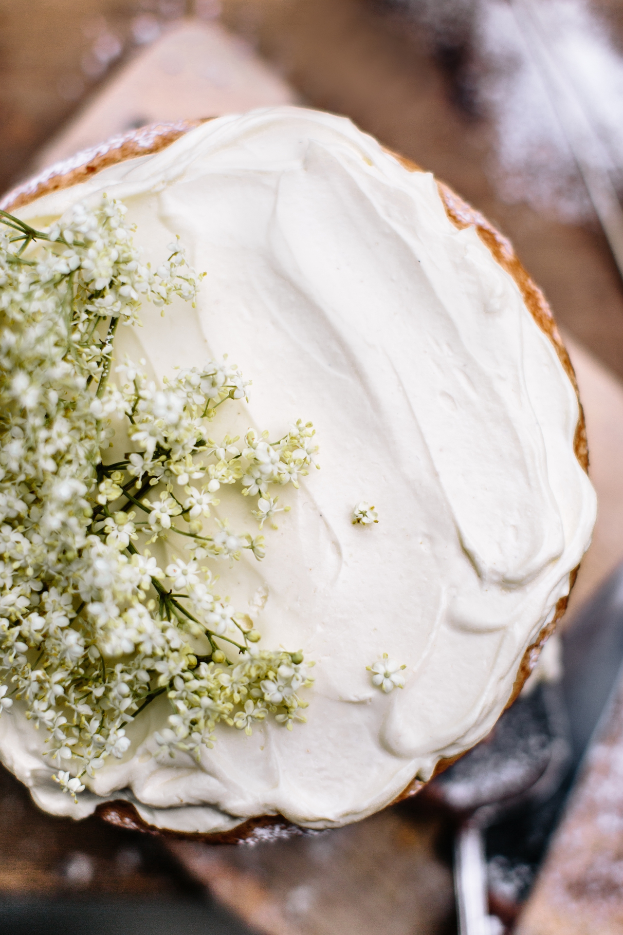 10. Den unteren Boden mit Holunderblüten Sirup beträufeln.