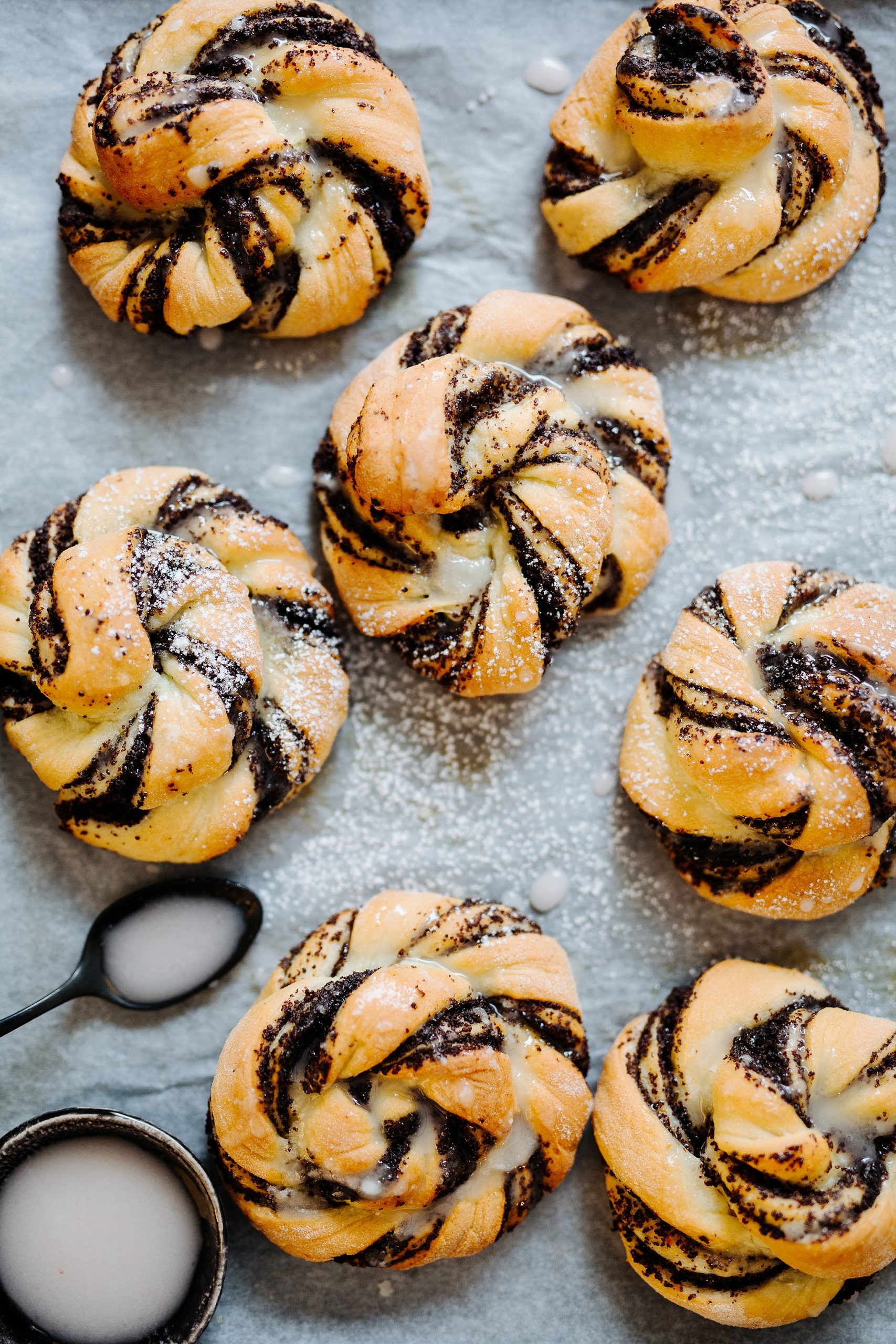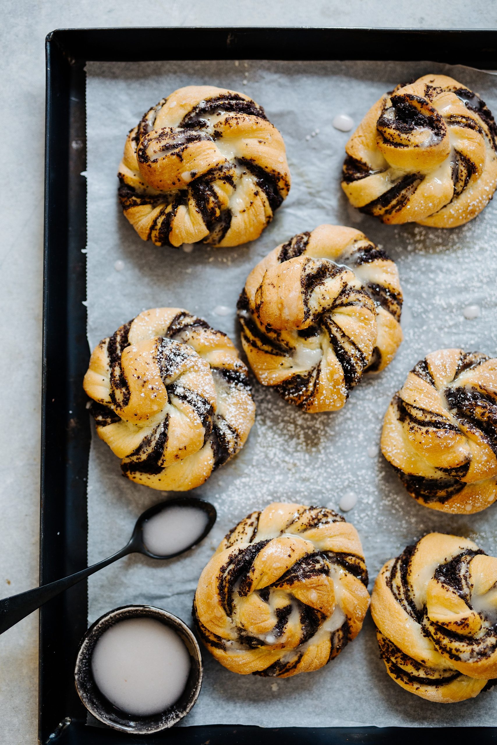 - Die Marmelade darauf verstreichen, dann die Mohnfüllung darauf verteilen.