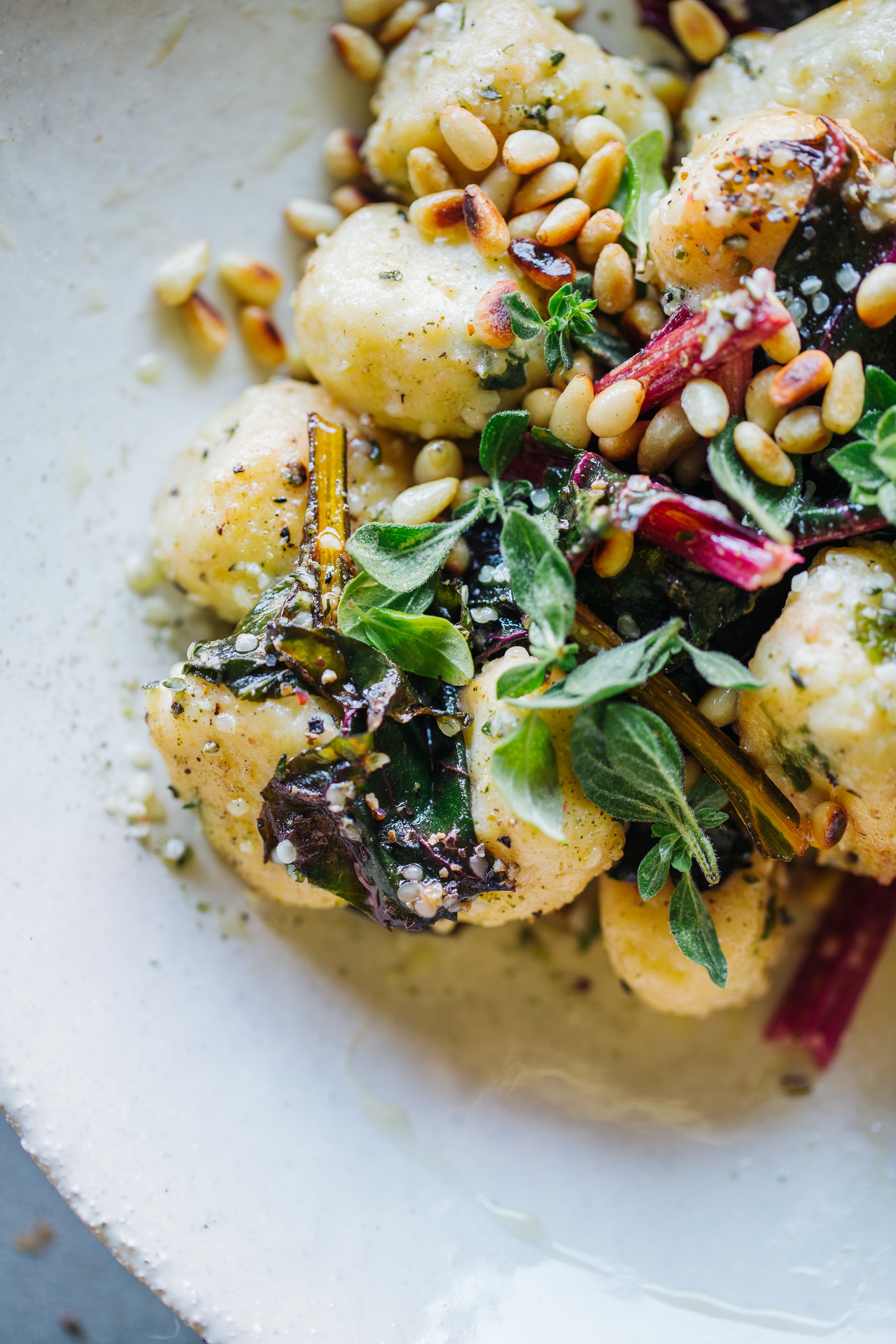 6. Mit Limette, Salz und Pfeffer nachwürzen. Hanfsamen für den nussigen Geschmack untermengen. Pinienkerne in einer Pfanne ohne Öl leicht anbraten und als Topping über den Gnocchi verteilen.