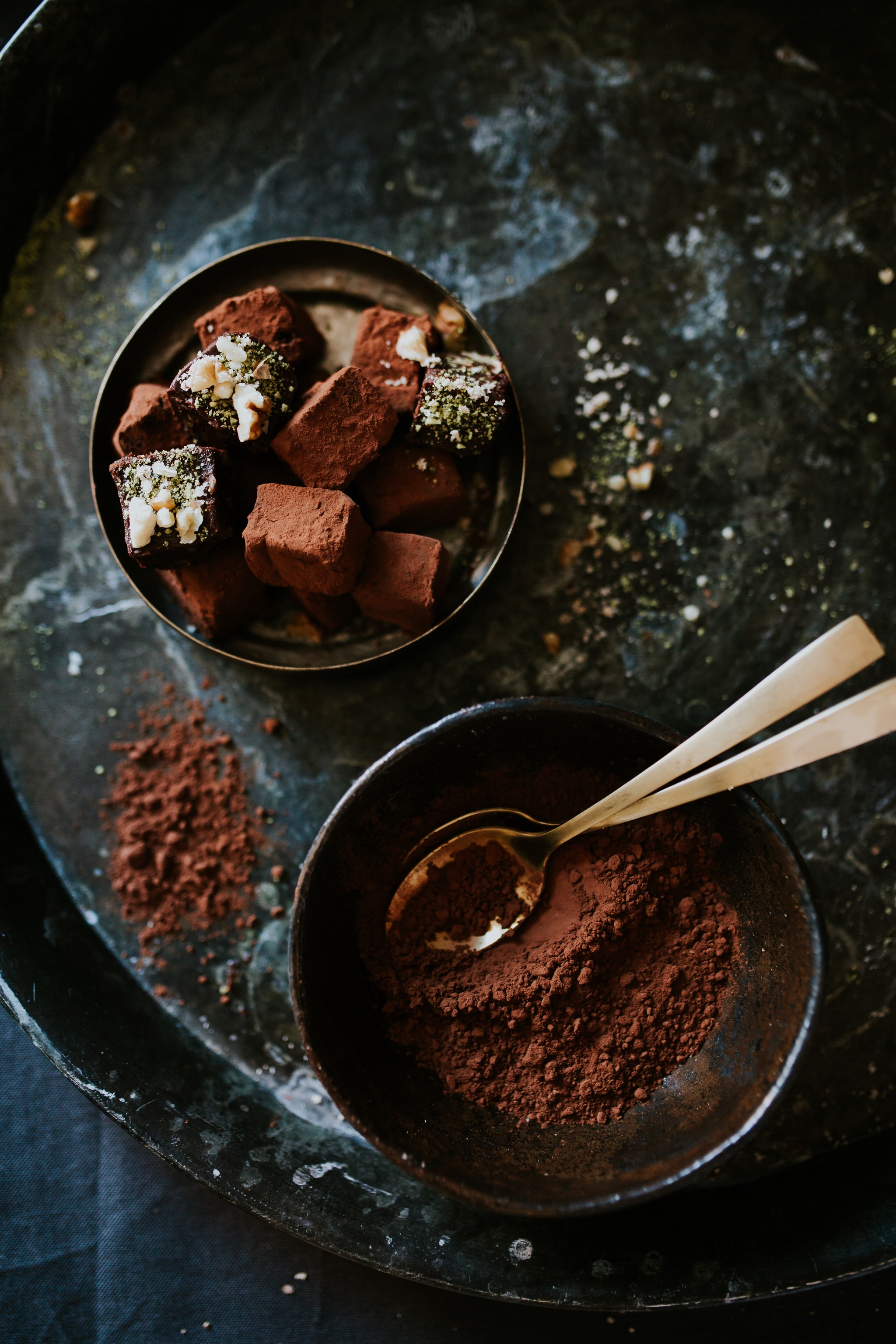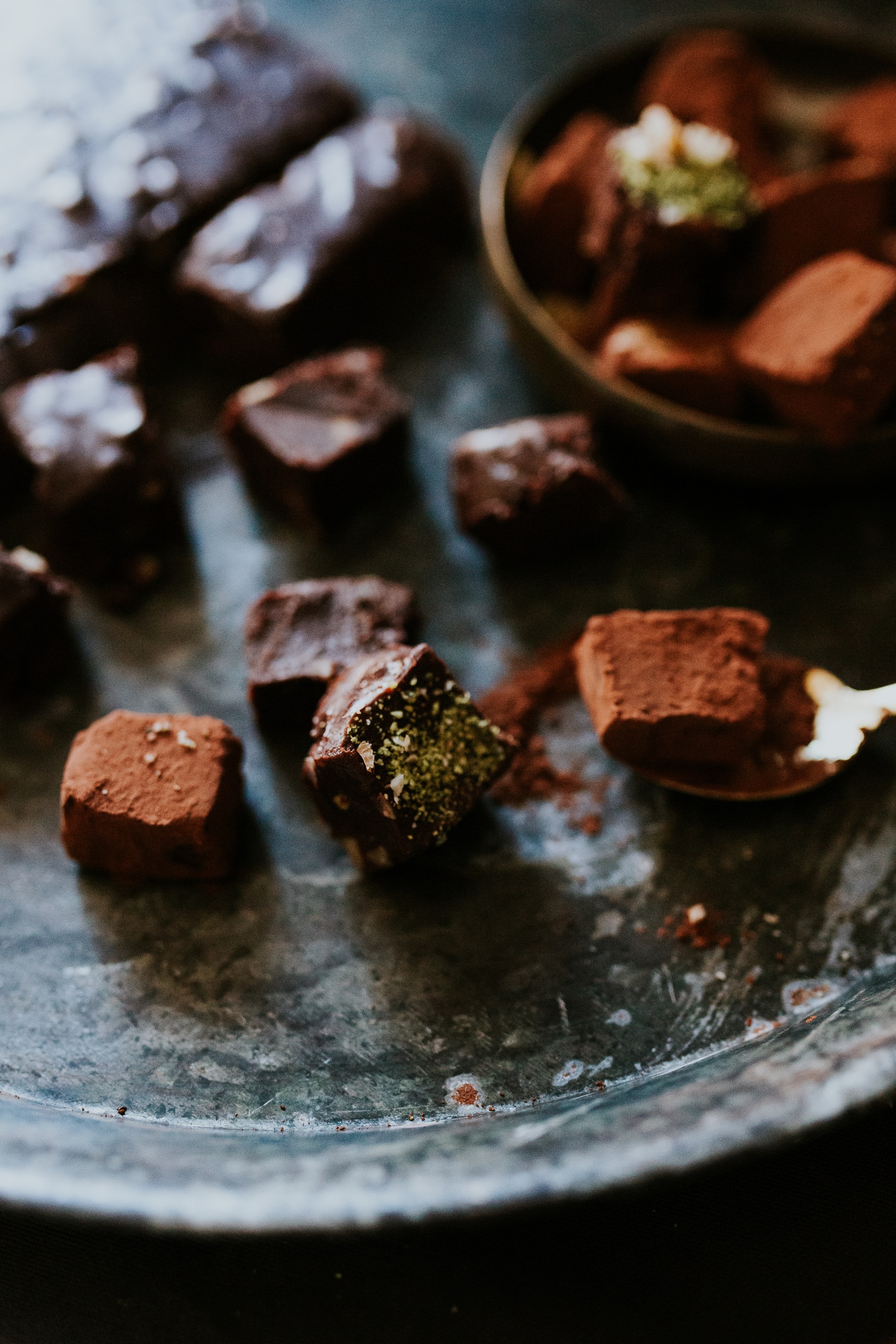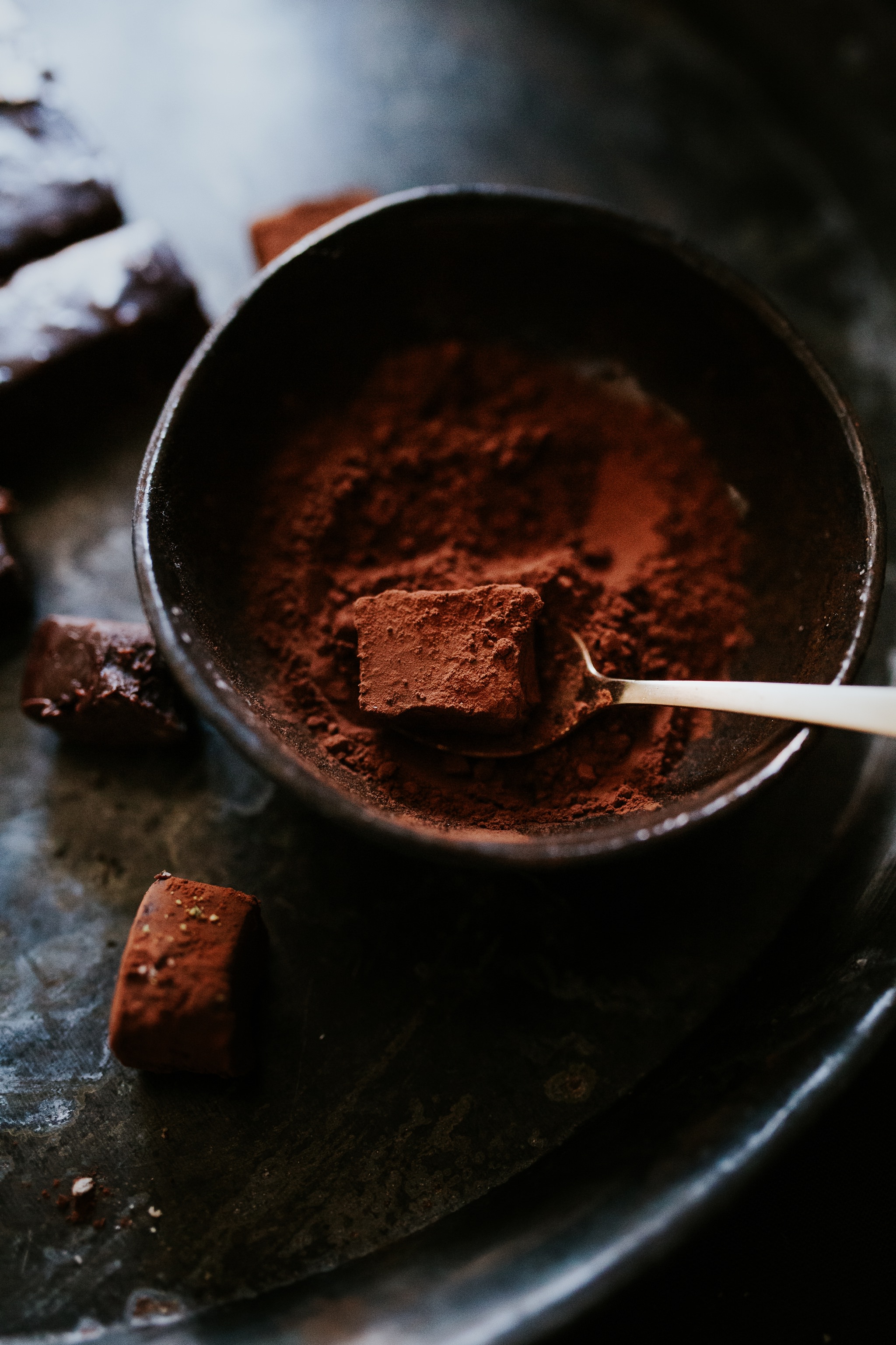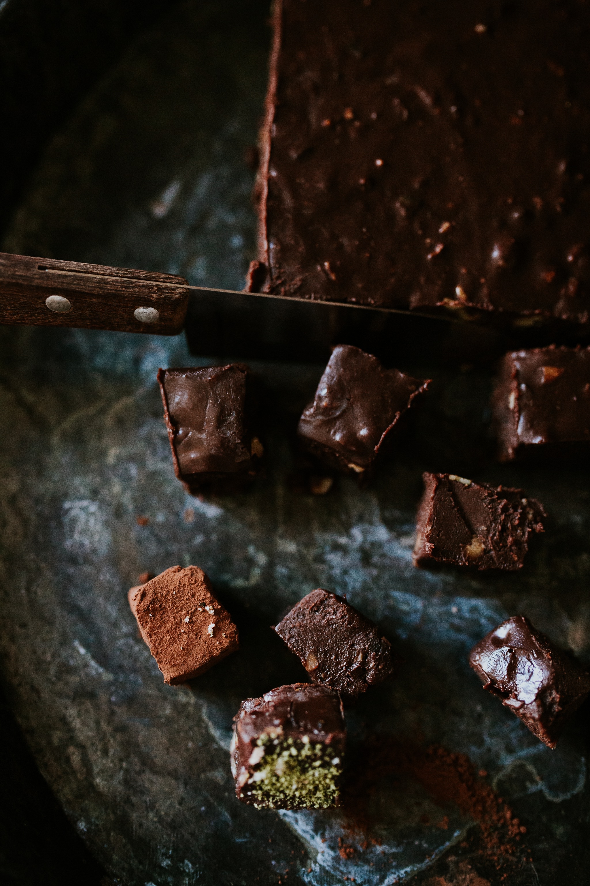 - In Stücke oder Würfel schneiden und in Kakao und/oder geriebenen Nüssen wälzen.