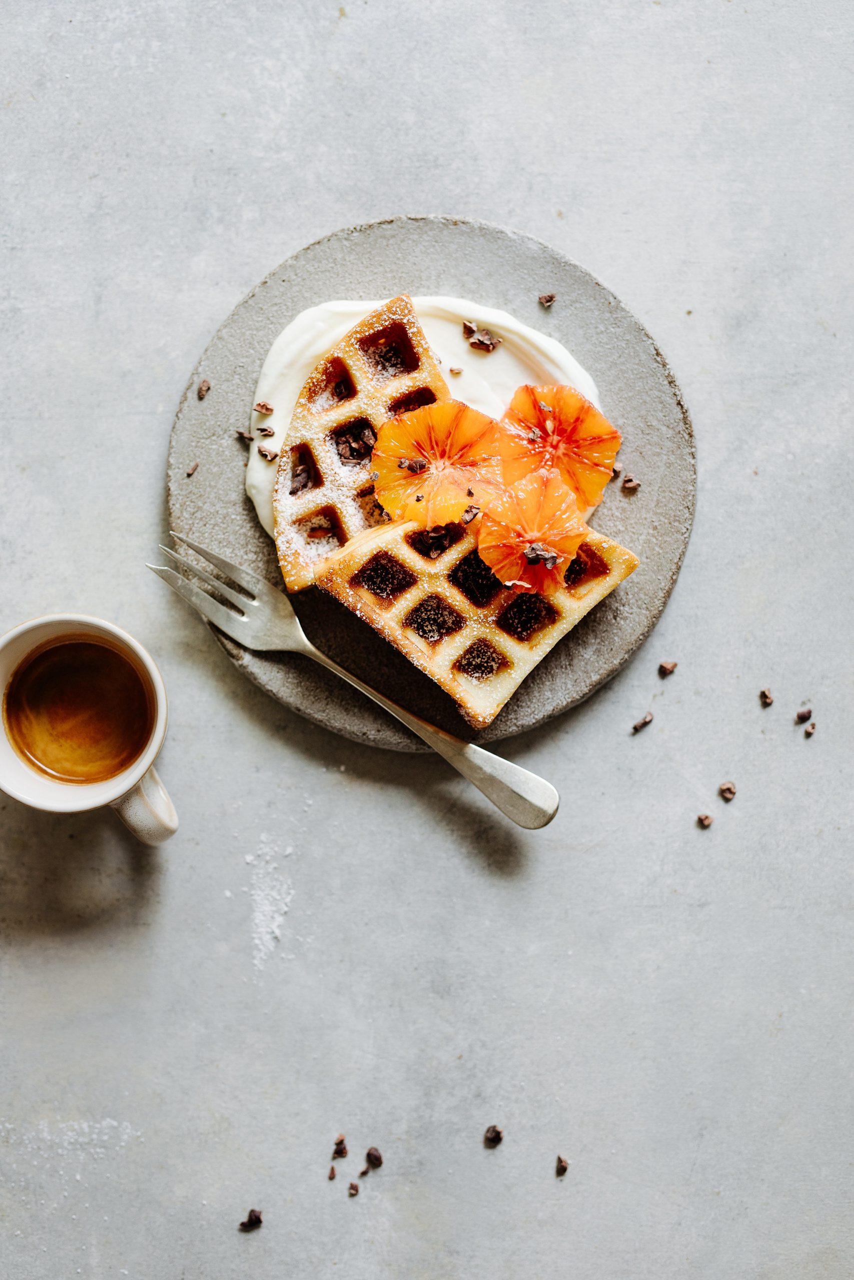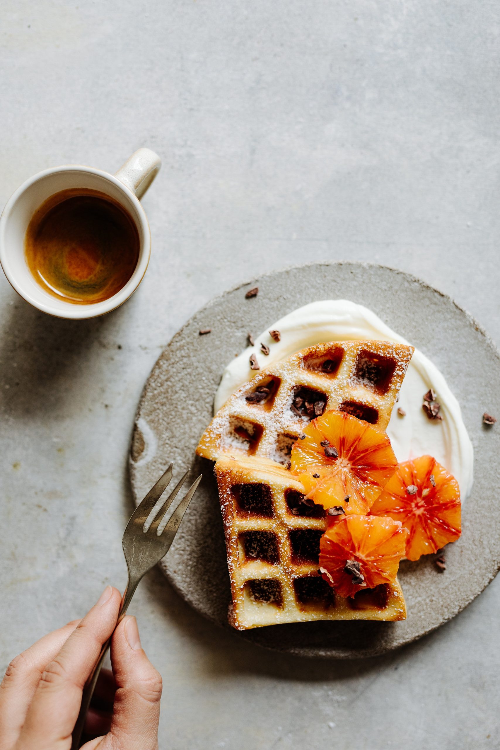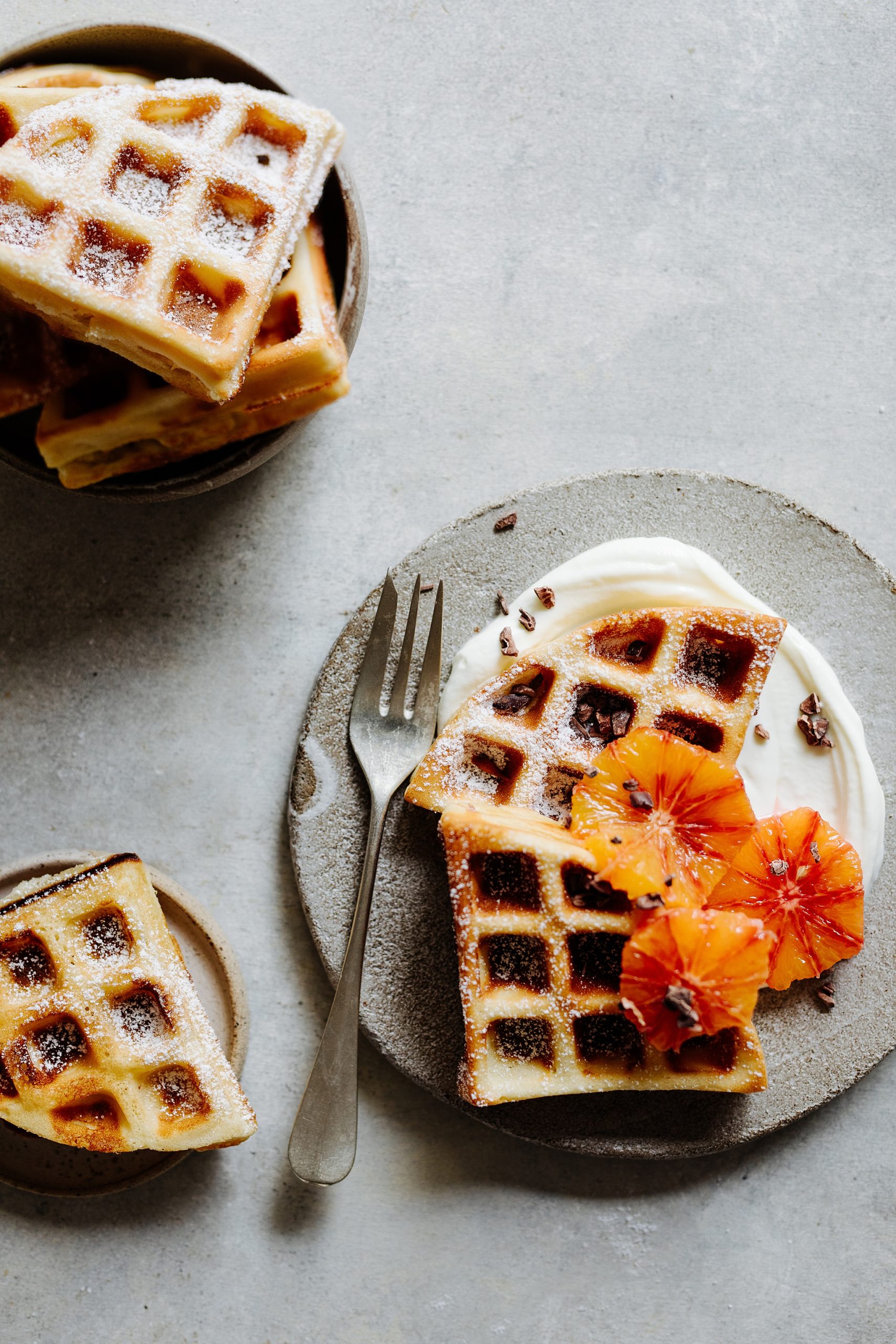 - Noch warm mit Staubzucker bestreuen. Und mit Orangen und Skyr anrichten.